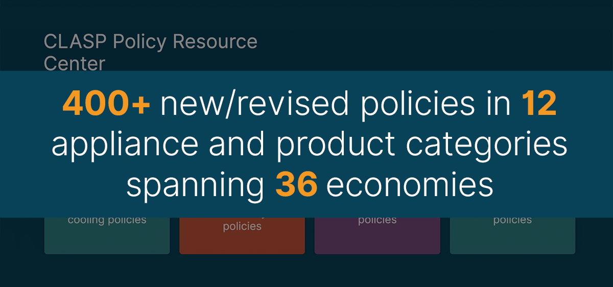 This year, the CLASP Policy Resource Center (CPRC) added and updated 400+ policies for a number of appliances in the highest emitting countries, along with those that have not been reviewed recently.